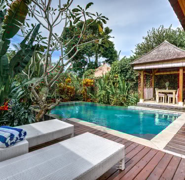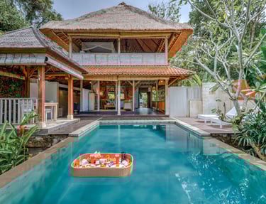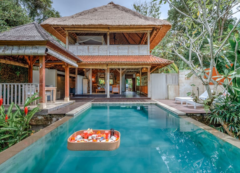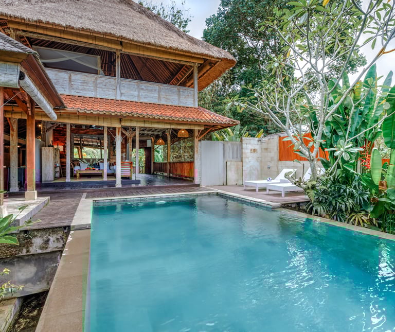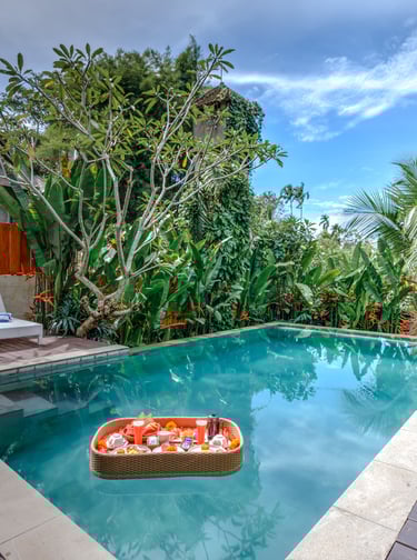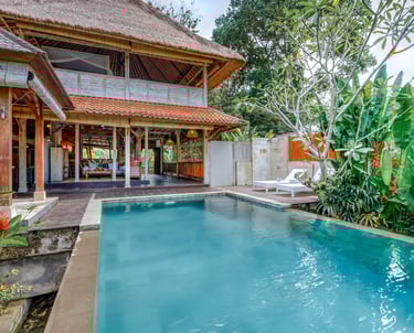 Villa Bedauh Wetan is a private pool villa in Bali offering luxury, privacy, and comfort for honeymoon couples and families. Located in a quiet yet Ubud, the villa features 1 spacious bedrooms with ensuite bathrooms, open living space, tropical garden, high-speed WiFi and daily housekeeping